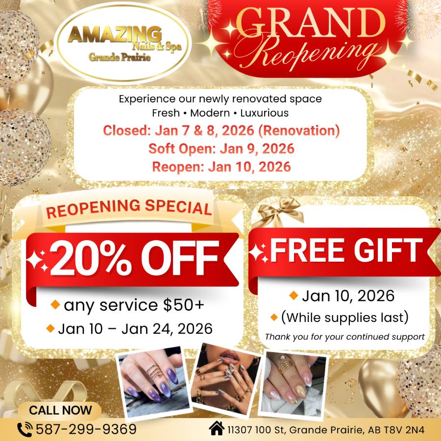 Amazing Nails & Spa is the premier nail salon for nail services in the heart of Grande Prairie, AB T8V 2N4. Our nail salon is proud to deliver the highest quality treatments to our customers.